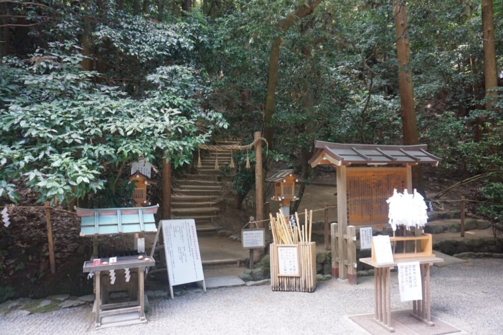 大神神社の御朱印は、拝殿の向かい側にある授与所にていただけます。「御朱印」という看板があります。授与所での授与時間は、3月~11月 9:00~17:00、12月~2月 9:00~16:30ですが、最新情報は公式サイトで確認してください。